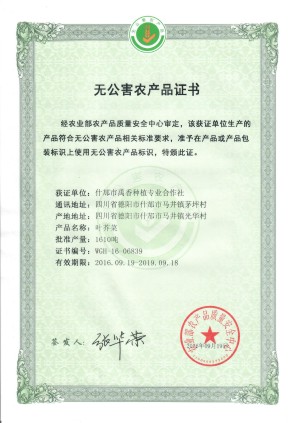 無公害農產品證書